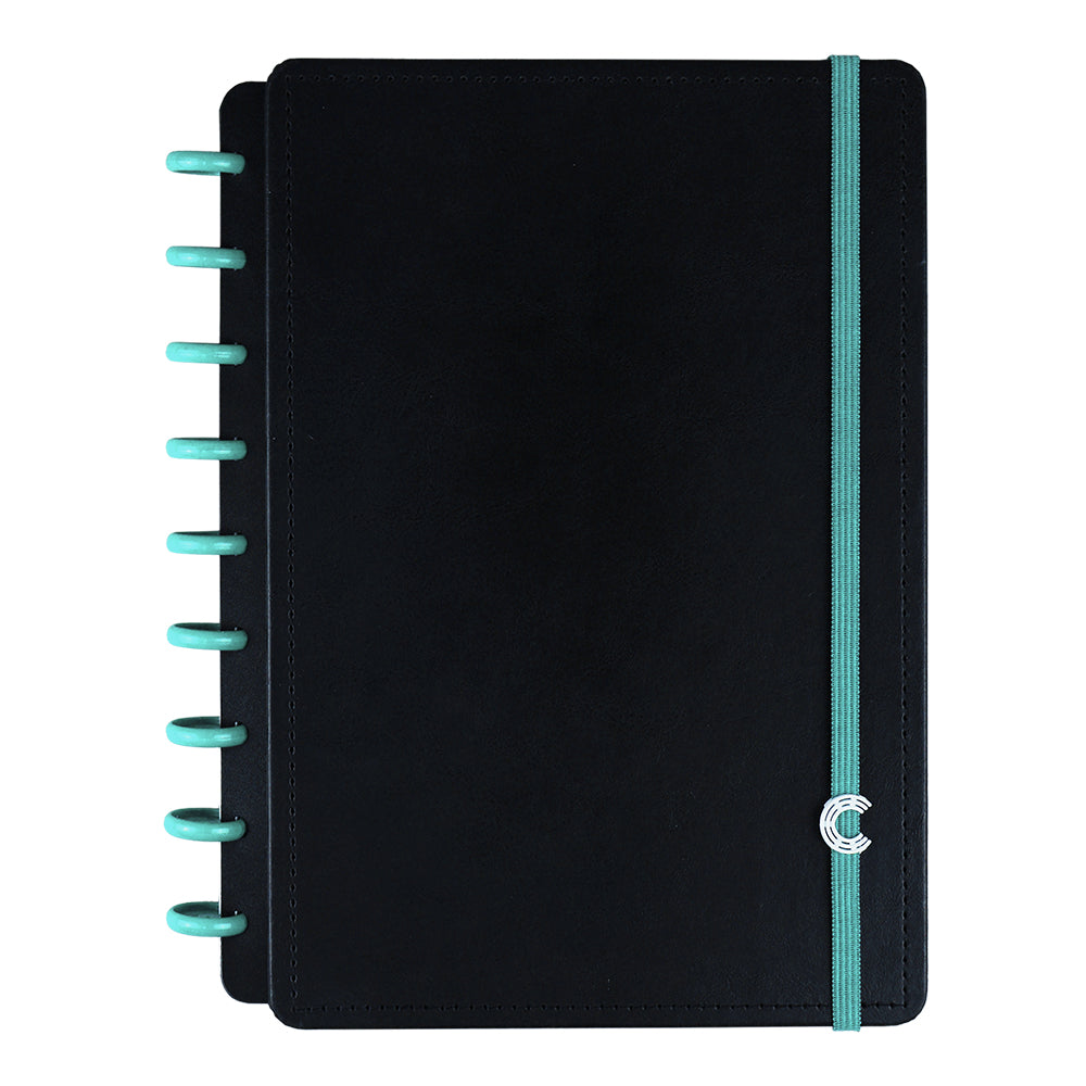 Tamanho Grande. Comporta até 150 folhas de 90g ou 120 folhas de 120g. Mude as cores dos discos e do elástico do seu Caderno Inteligente®, deixando-o sempre com cara de novo! ;)