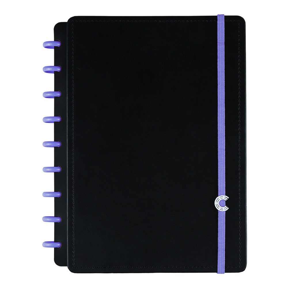Tamanho Grande. Comporta até 150 folhas de 90g ou 120 folhas de 120g. Mude as cores dos discos e do elástico do seu Caderno Inteligente®, deixando-o sempre com cara de novo! ;)