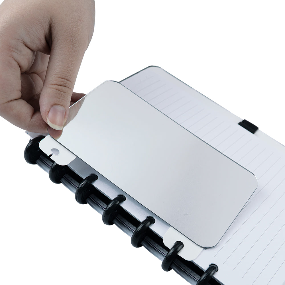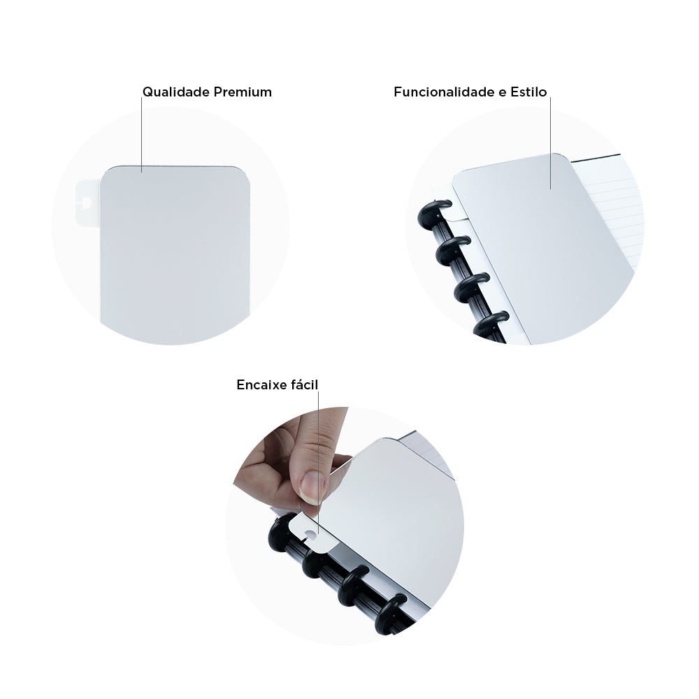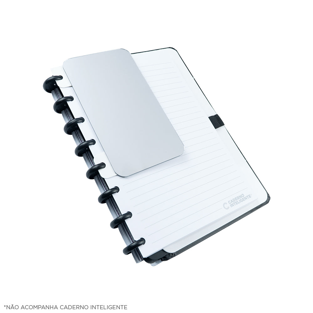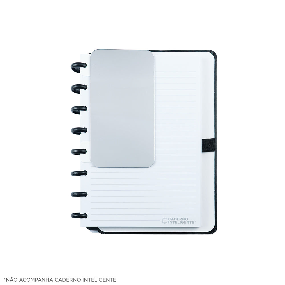 Tamanho Médio. Comporta até 80 folhas de 90g ou 60 folhas de 120g Mude as cores dos discos e do elástico do seu Caderno Inteligente®, deixando-o sempre com cara de novo! ;)