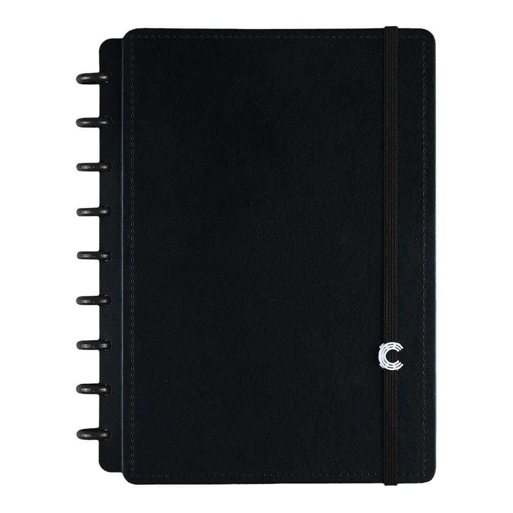 Tamanho Médio. Comporta até 80 folhas de 90g ou 60 folhas de 120g Mude as cores dos discos e do elástico do seu Caderno Inteligente®, deixando-o sempre com cara de novo! ;)