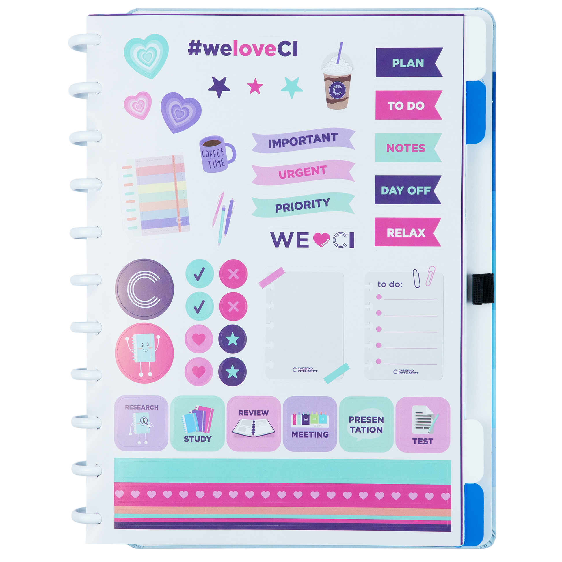 Tamanho Médio. Comporta até 80 folhas de 90g ou 60 folhas de 120g Mude as cores dos discos e do elástico do seu Caderno Inteligente®, deixando-o sempre com cara de novo! ;)