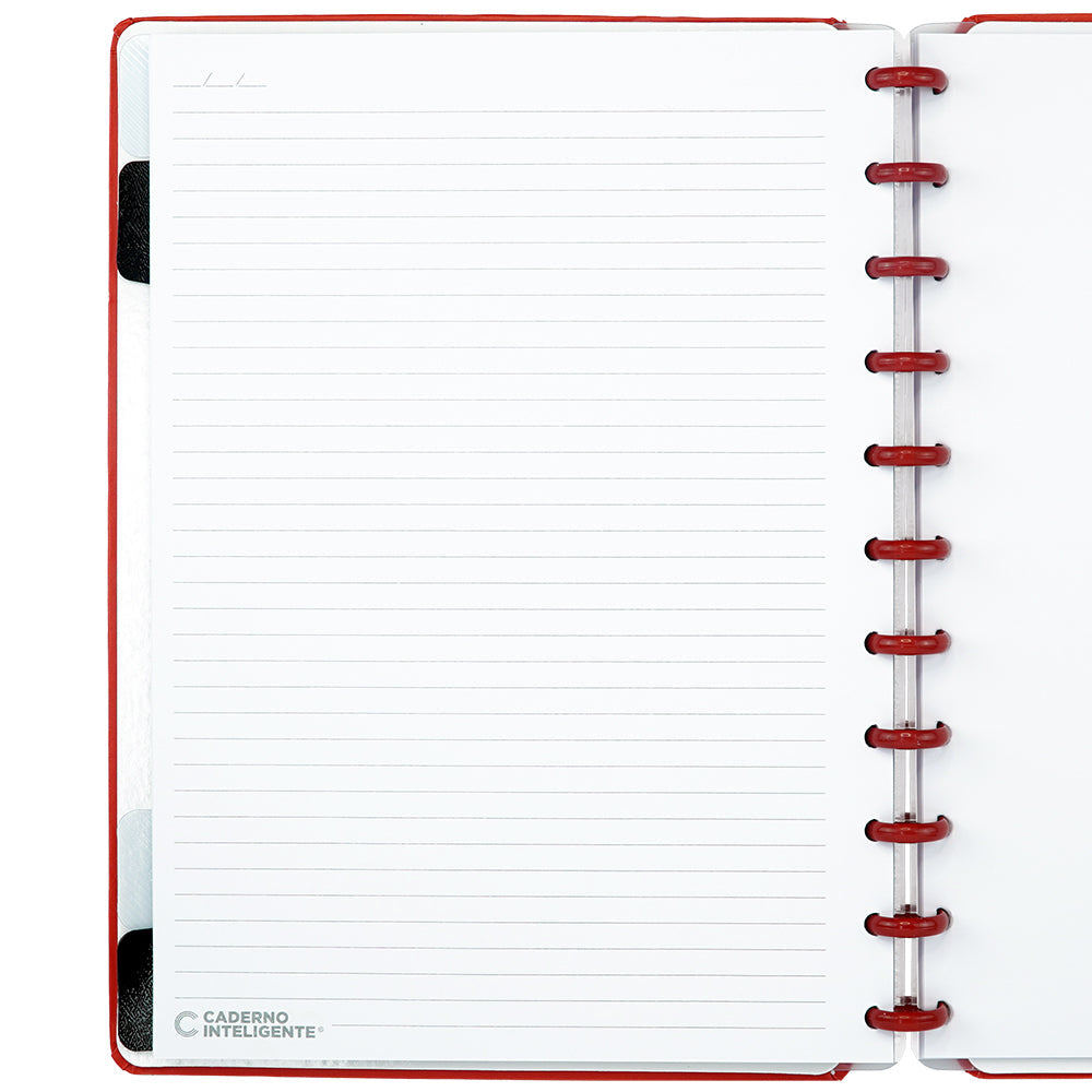 Tamanho Médio. Comporta até 80 folhas de 90g ou 60 folhas de 120g Mude as cores dos discos e do elástico do seu Caderno Inteligente®, deixando-o sempre com cara de novo! ;)