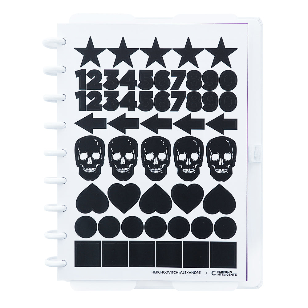 Tamanho Médio. Comporta até 80 folhas de 90g ou 60 folhas de 120g Mude as cores dos discos e do elástico do seu Caderno Inteligente®, deixando-o sempre com cara de novo! ;)