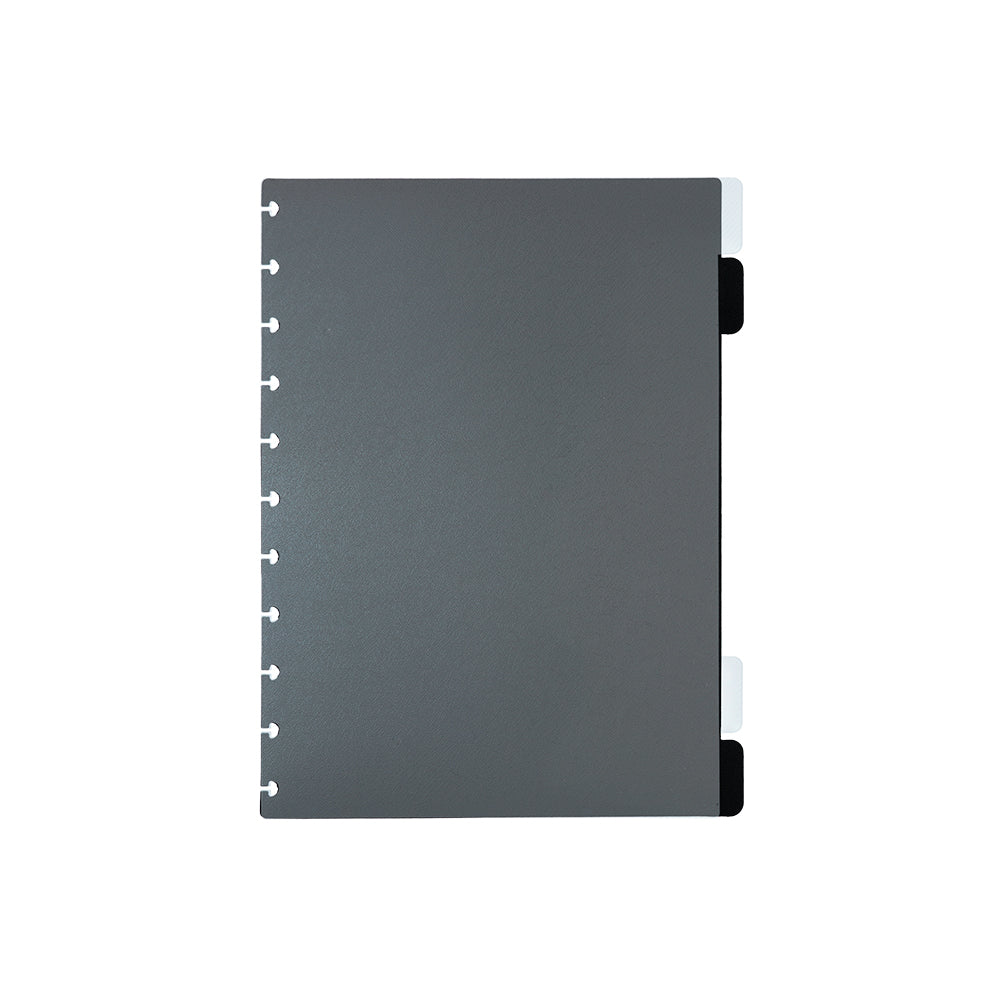 Tamanho Grande. Comporta até 150 folhas de 90g ou 120 folhas de 120g. Mude as cores dos discos e do elástico do seu Caderno Inteligente®, deixando-o sempre com cara de novo! ;)