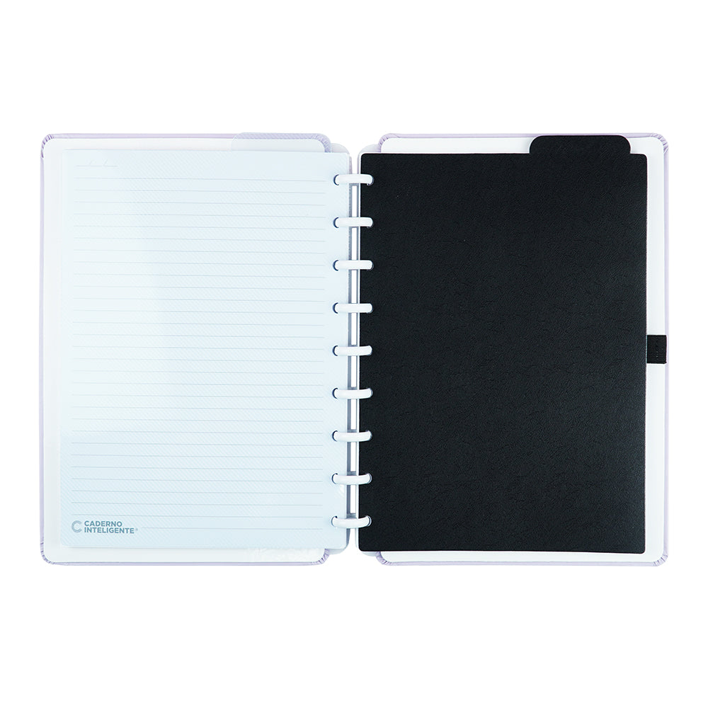 Tamanho Médio. Comporta até 80 folhas de 90g ou 60 folhas de 120g Mude as cores dos discos e do elástico do seu Caderno Inteligente®, deixando-o sempre com cara de novo! ;)