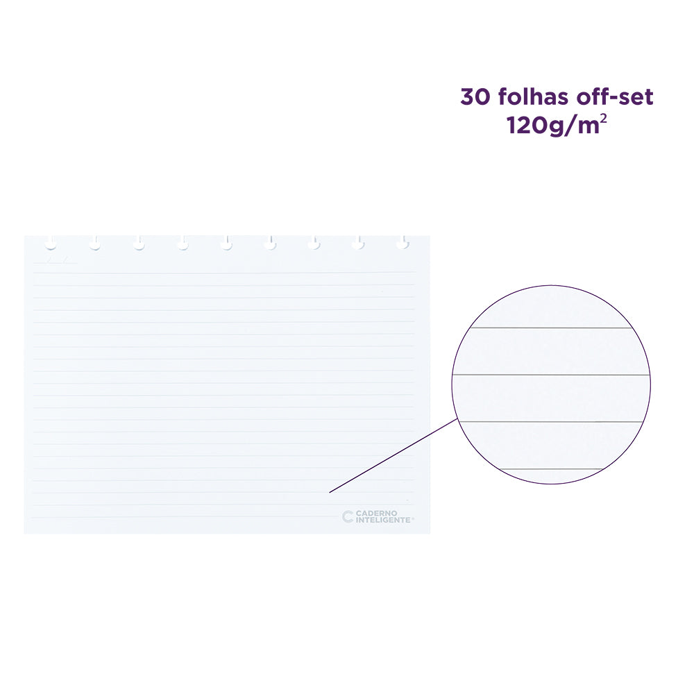 Tamanho Médio. Comporta até 80 folhas de 90g ou 60 folhas de 120g Mude as cores dos discos e do elástico do seu Caderno Inteligente®, deixando-o sempre com cara de novo! ;)