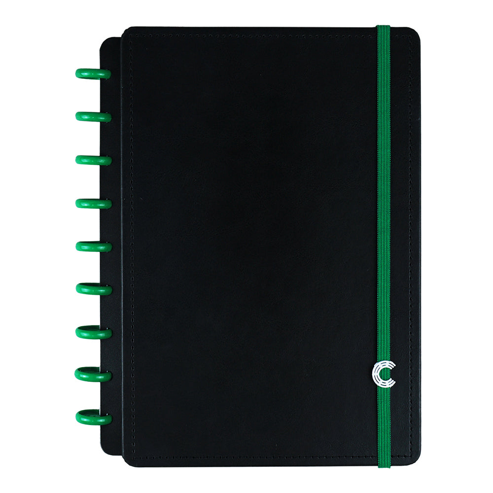 Tamanho Grande. Comporta até 150 folhas de 90g ou 120 folhas de 120g. Mude as cores dos discos e do elástico do seu Caderno Inteligente®, deixando-o sempre com cara de novo! ;)
