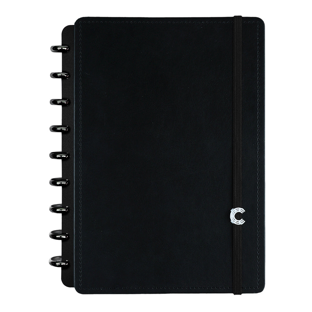 Tamanho Médio. Comporta até 80 folhas de 90g ou 60 folhas de 120g Mude as cores dos discos e do elástico do seu Caderno Inteligente®, deixando-o sempre com cara de novo! ;)