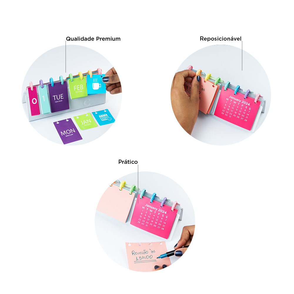 Tamanho Médio. Comporta até 80 folhas de 90g ou 60 folhas de 120g Mude as cores dos discos e do elástico do seu Caderno Inteligente®, deixando-o sempre com cara de novo! ;)