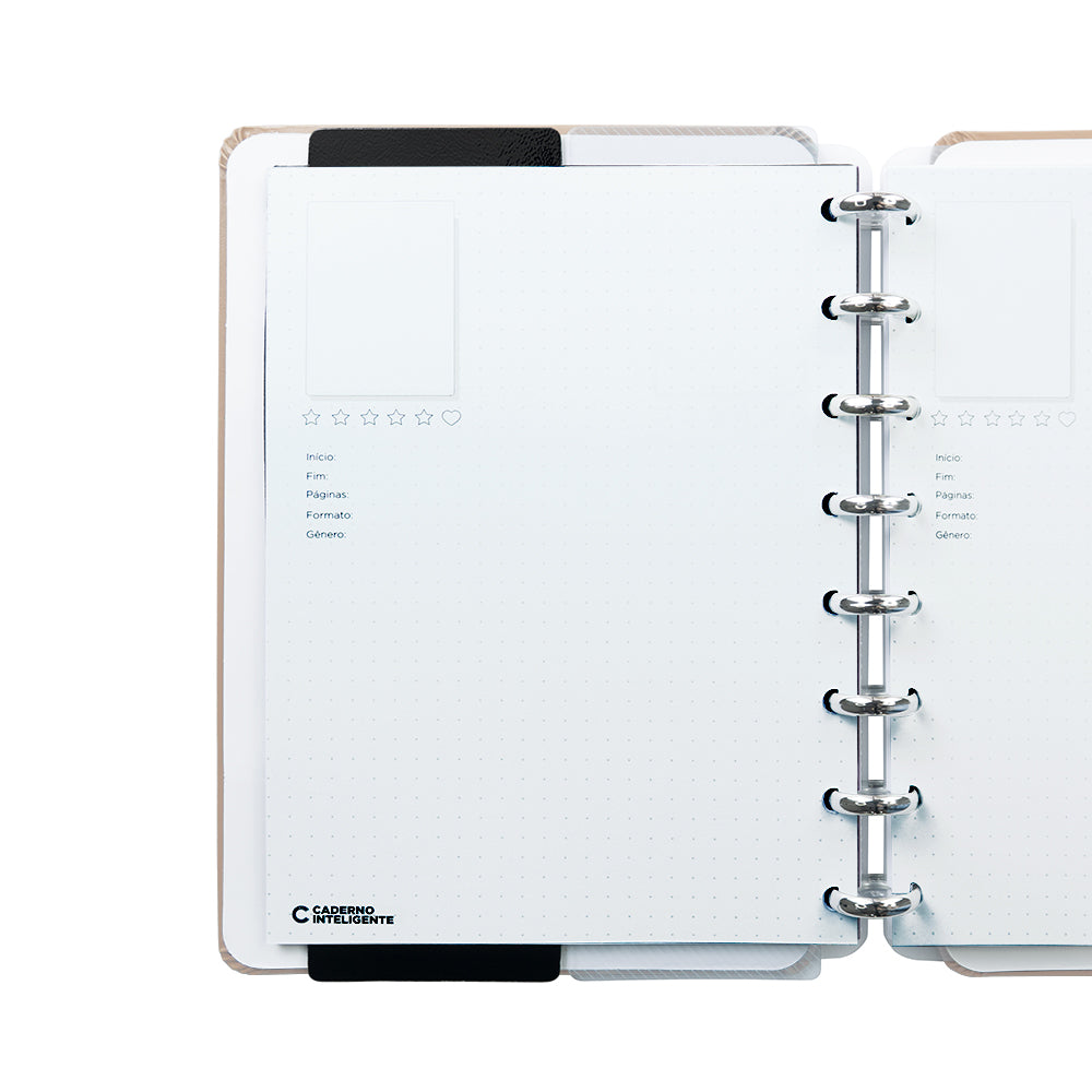 Tamanho Médio. Comporta até 80 folhas de 90g ou 60 folhas de 120g Mude as cores dos discos e do elástico do seu Caderno Inteligente®, deixando-o sempre com cara de novo! ;)