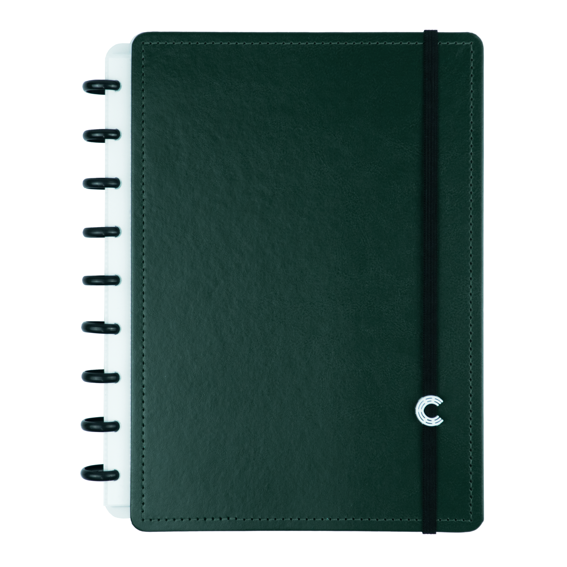 Tamanho Grande. Comporta até 150 folhas de 90g ou 120 folhas de 120g. Mude as cores dos discos e do elástico do seu Caderno Inteligente®, deixando-o sempre com cara de novo! ;)